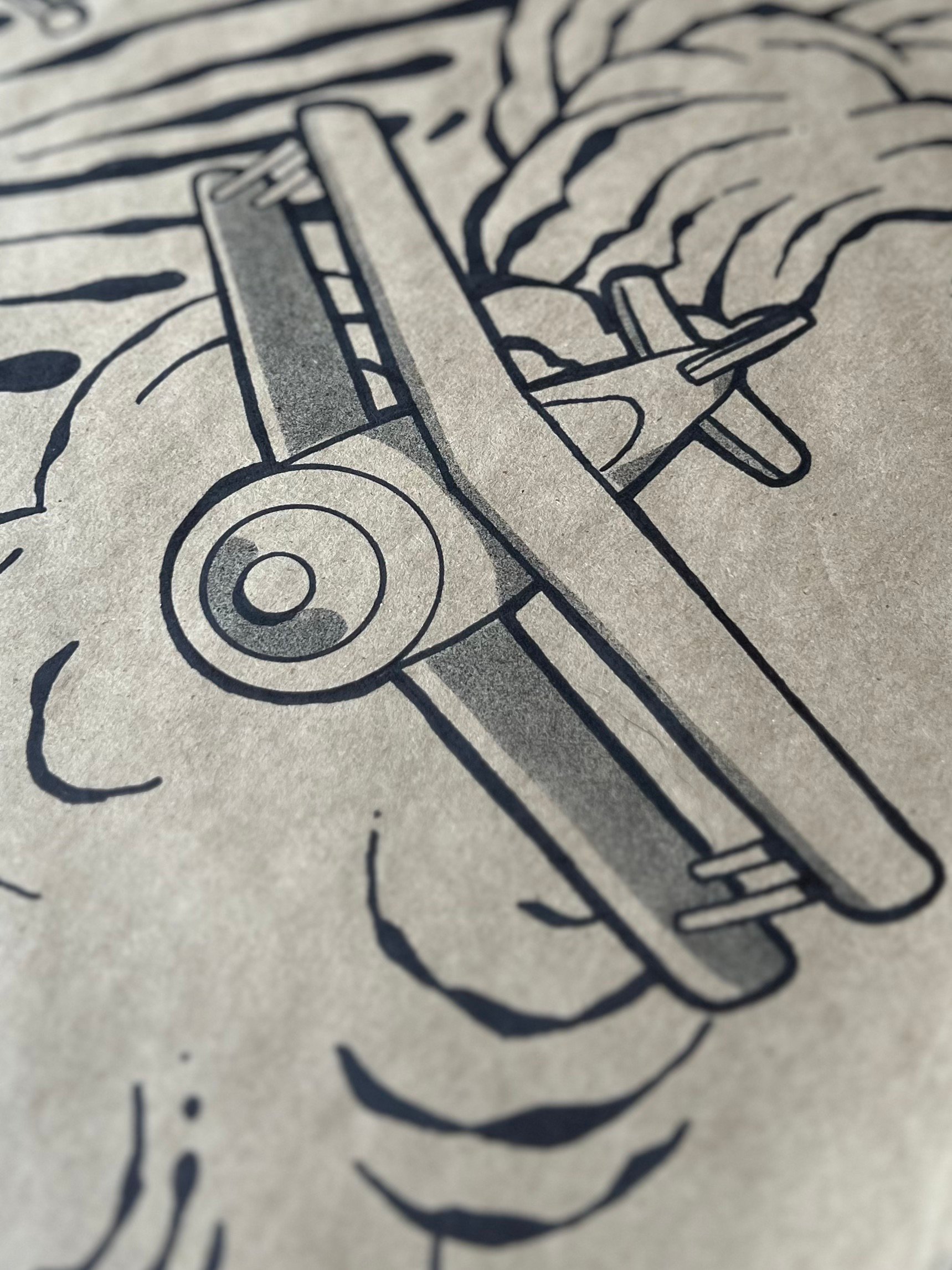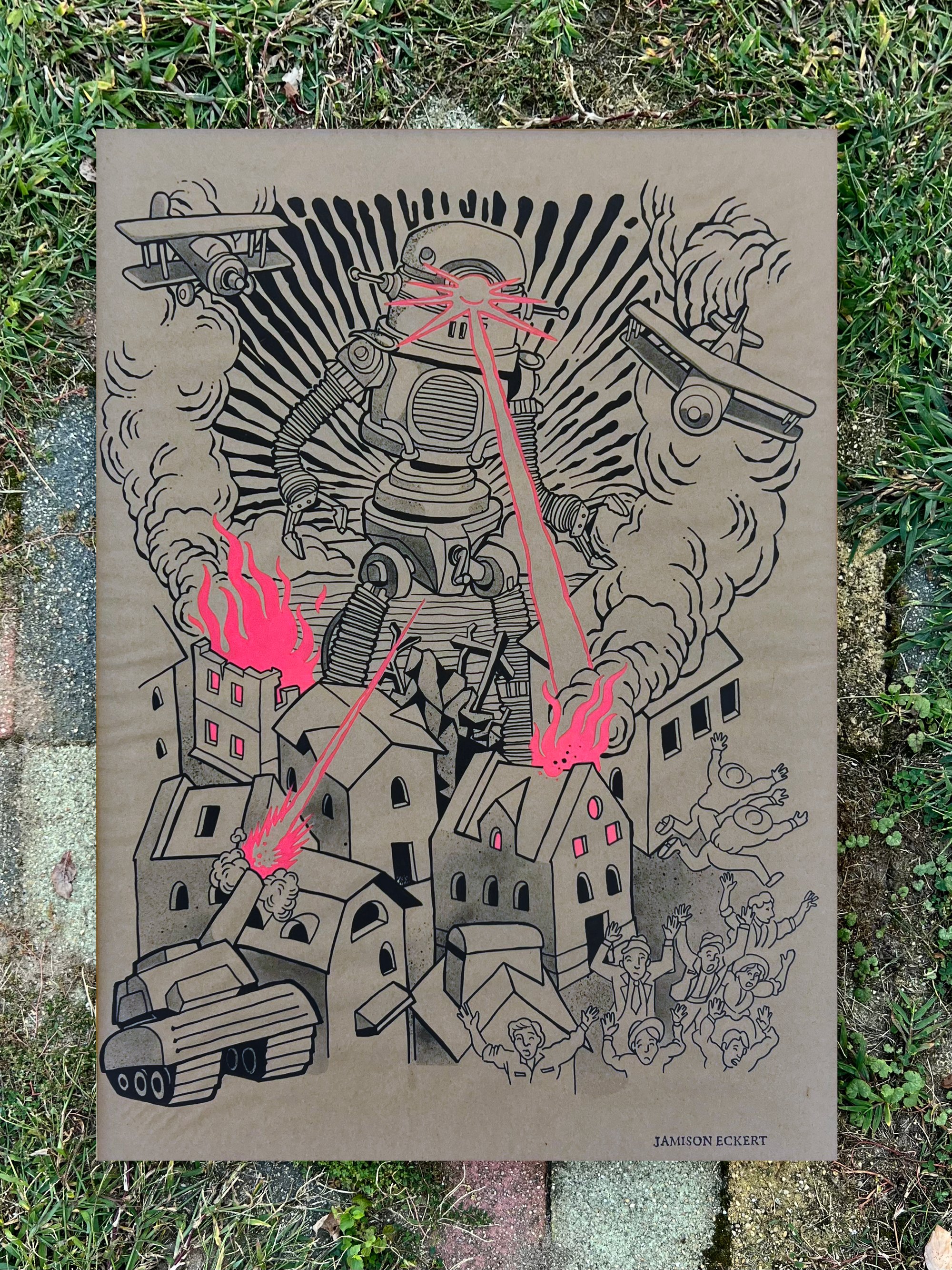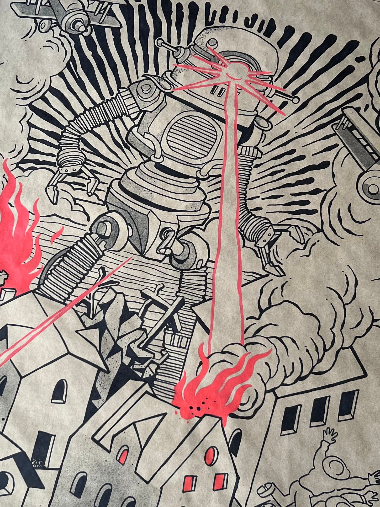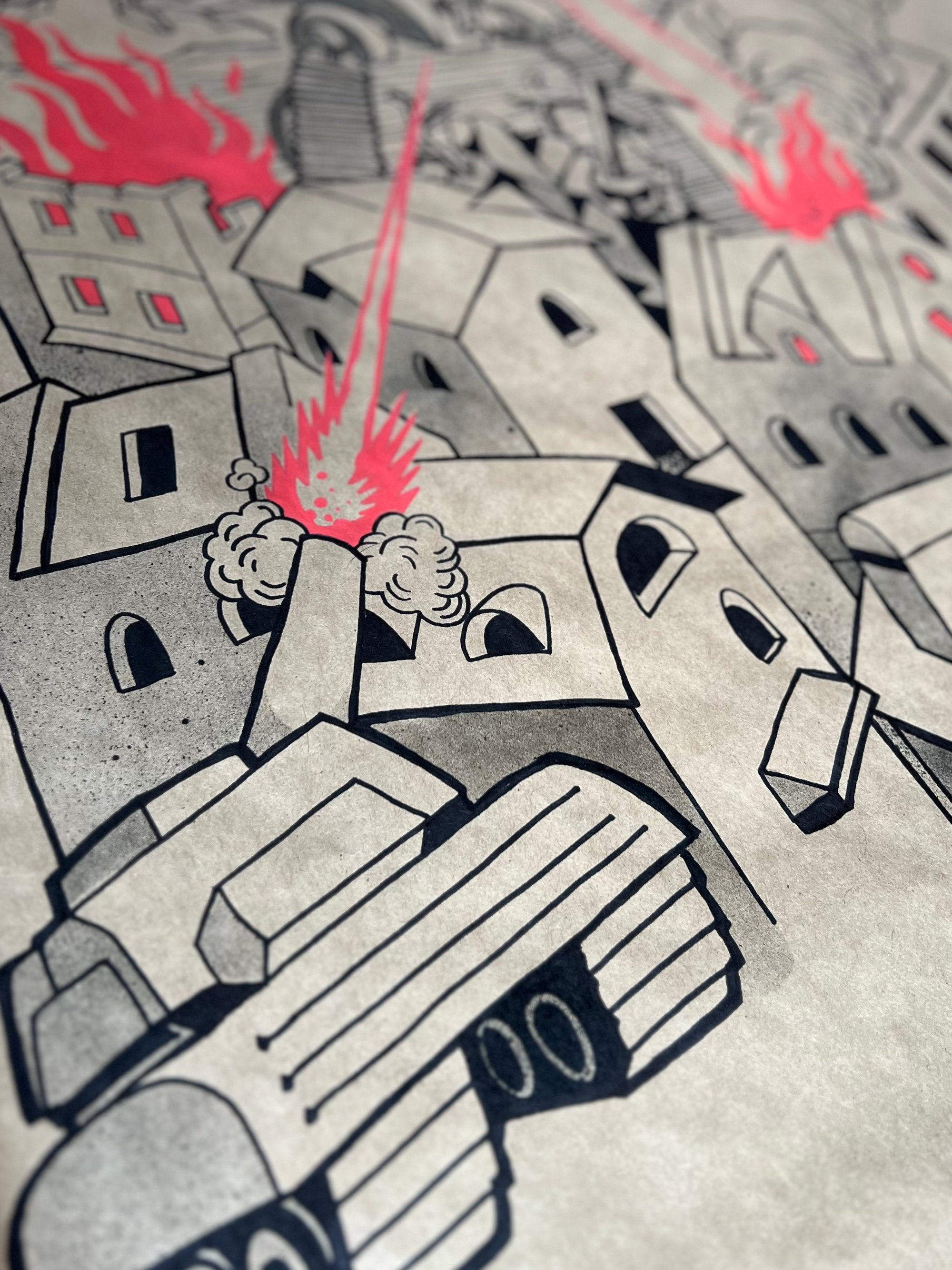 Ink and spray paint on 31 x 42" butcher paper.