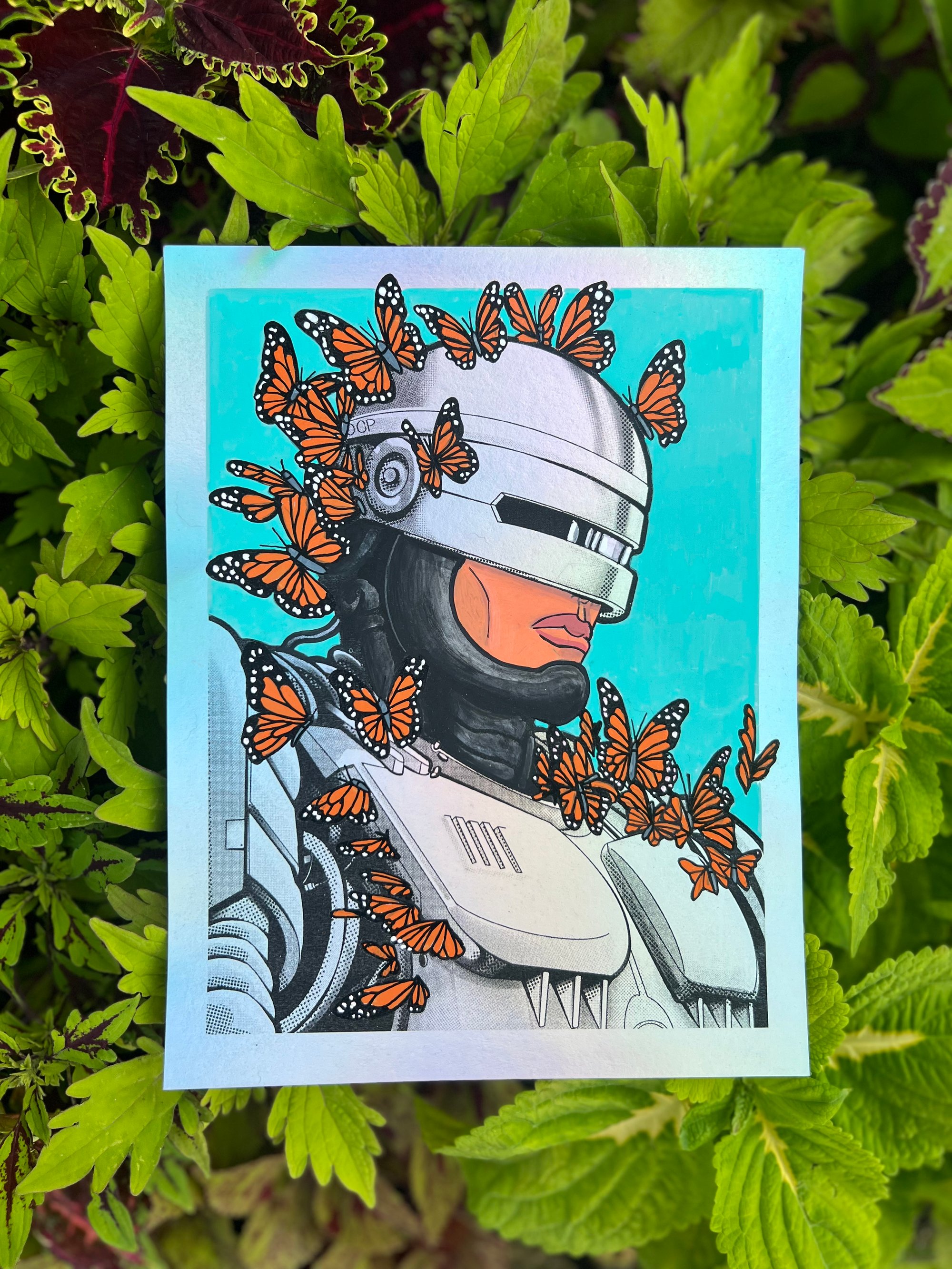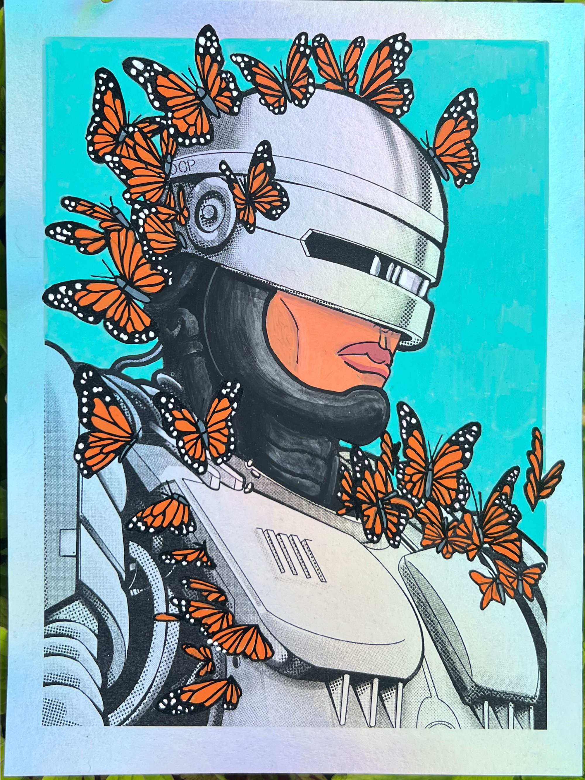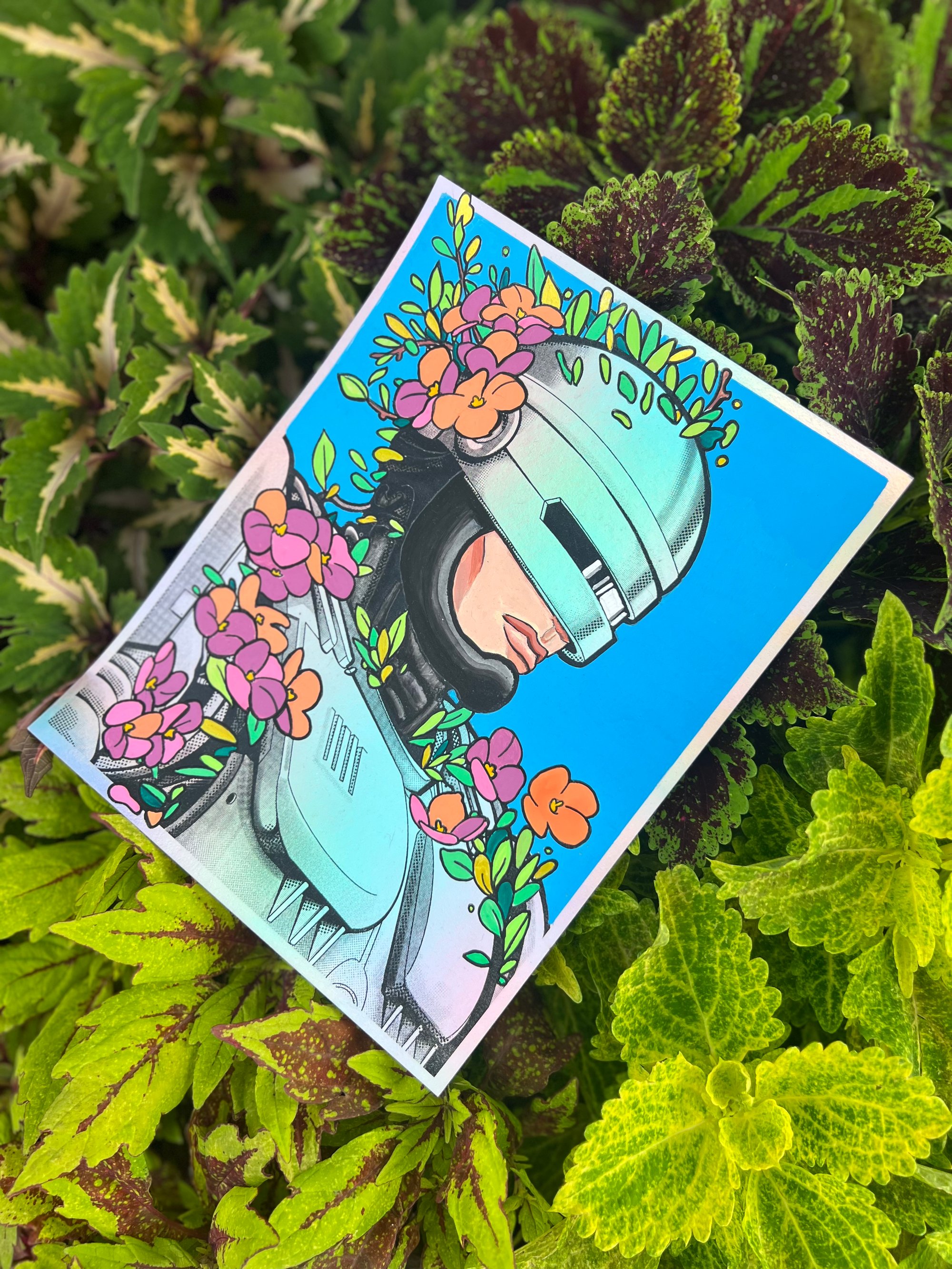 Paint on 8.5 x 11" holographic print. Flower or butterfly options.