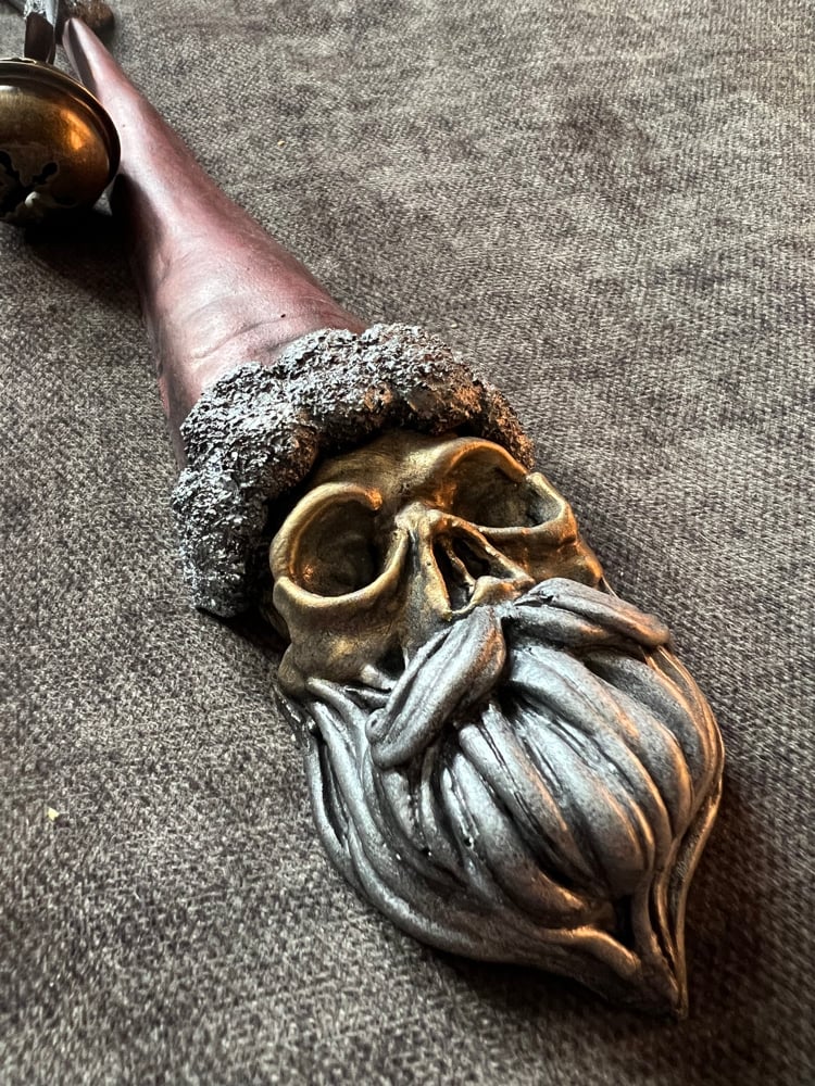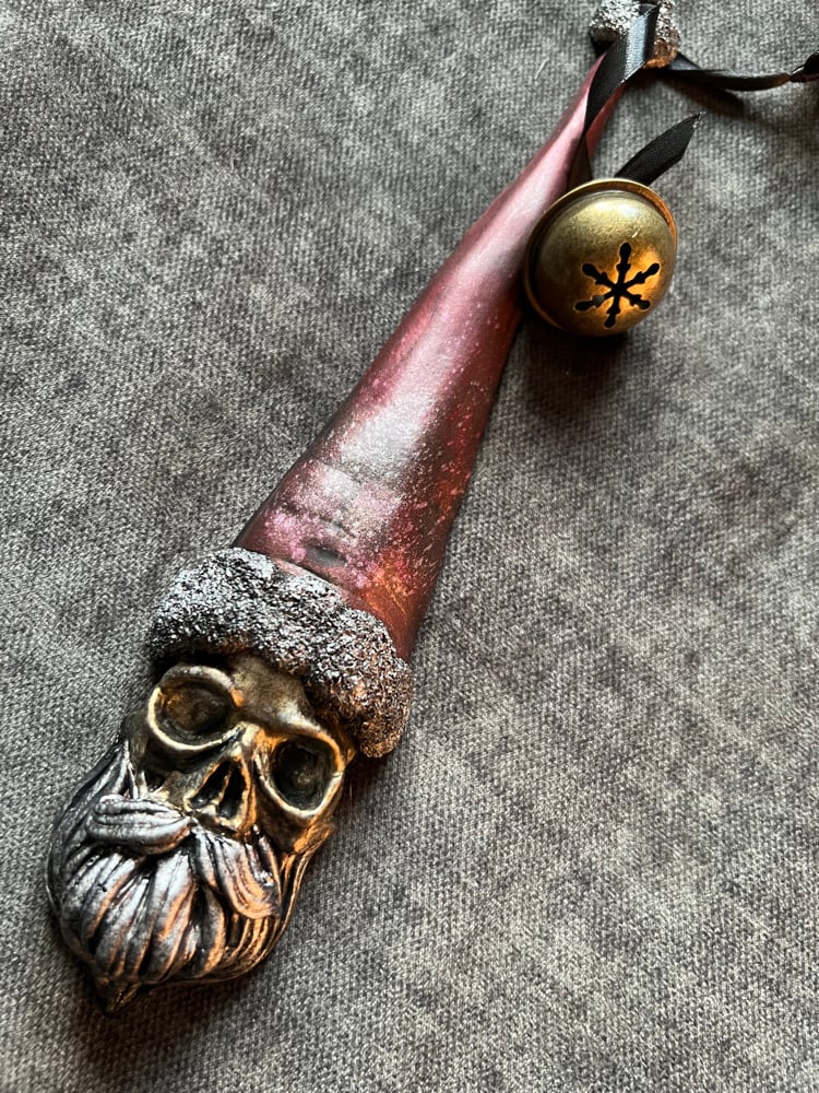 Hand painted resin cast Santa skull ornament. *Rose gold style w jingle bell and ready to hang!
